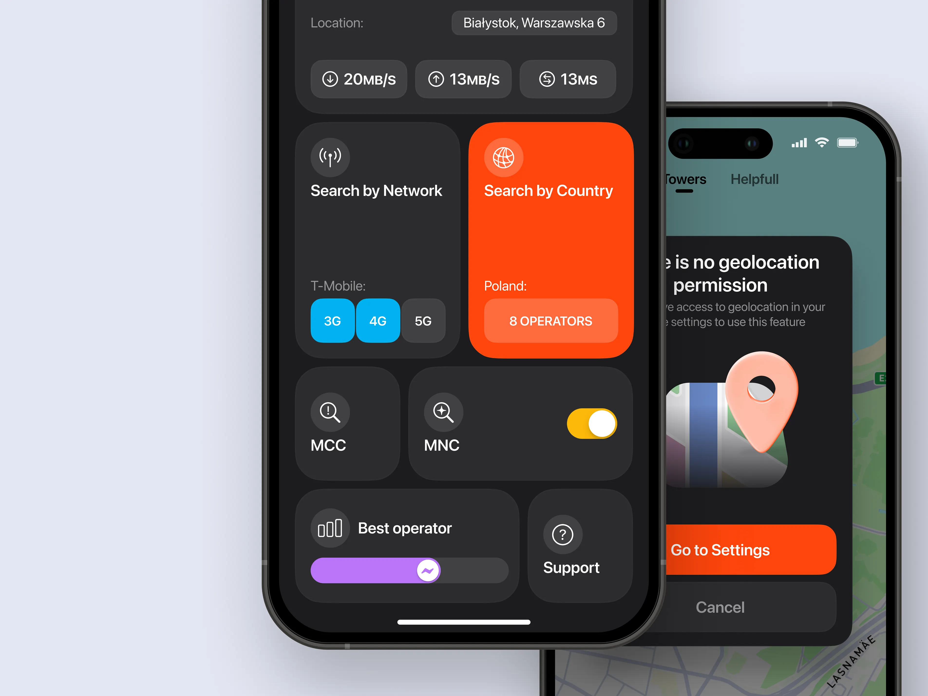 Explore towers on an interactive map with rich visual details, tap any tower to see its operator, network type (5G, 4G/LTE, 3G), signal strength, and more. View a list of the closest towers with exact distances from your current location, and use smart filters to focus only on the networks you need. Need to check your connection? Run a built-in speed test and instantly see how your internet performs.